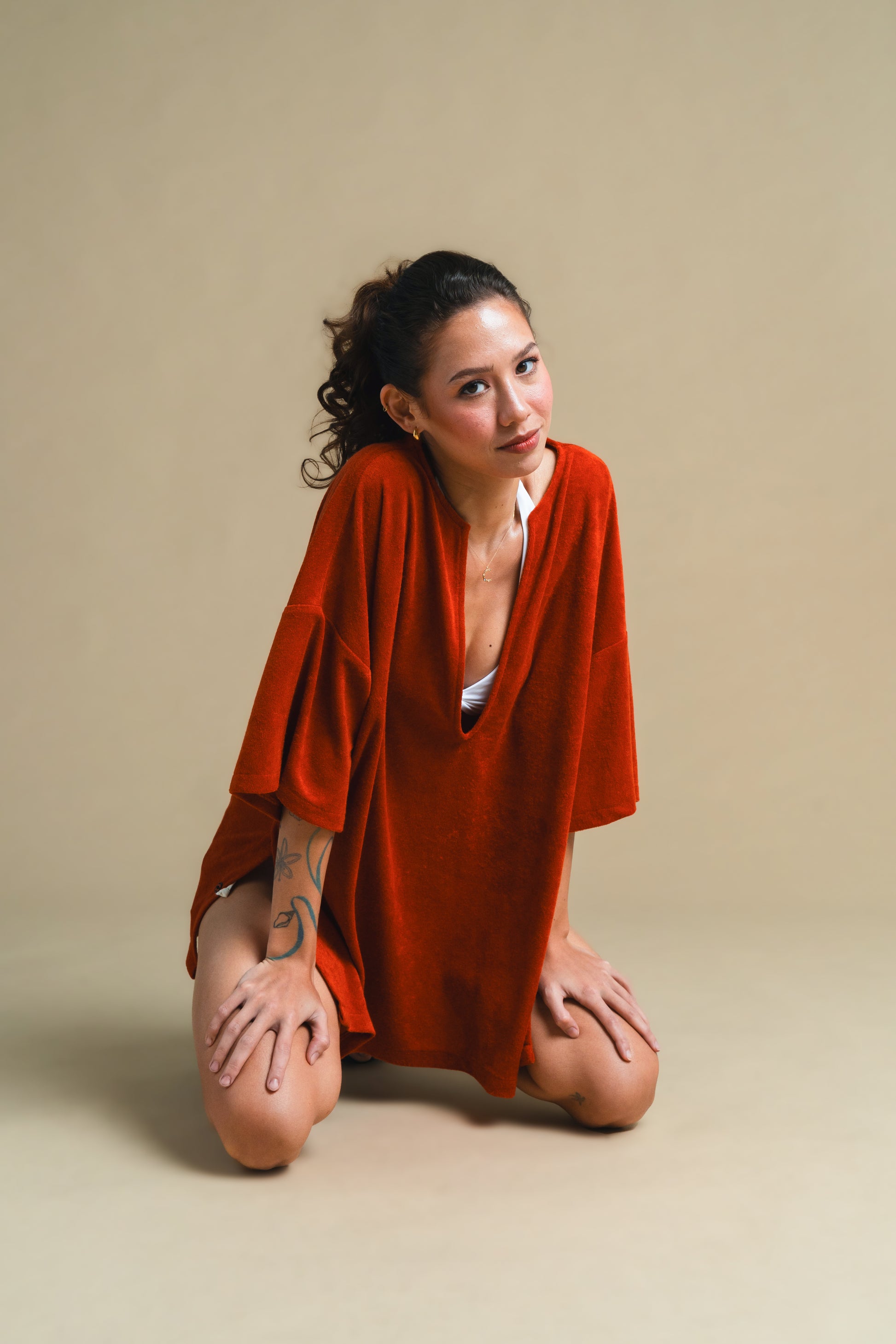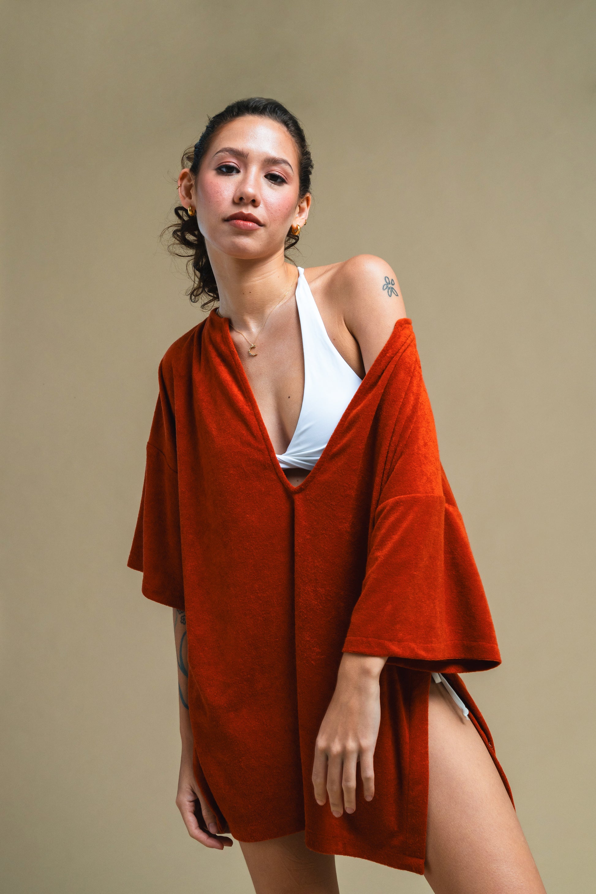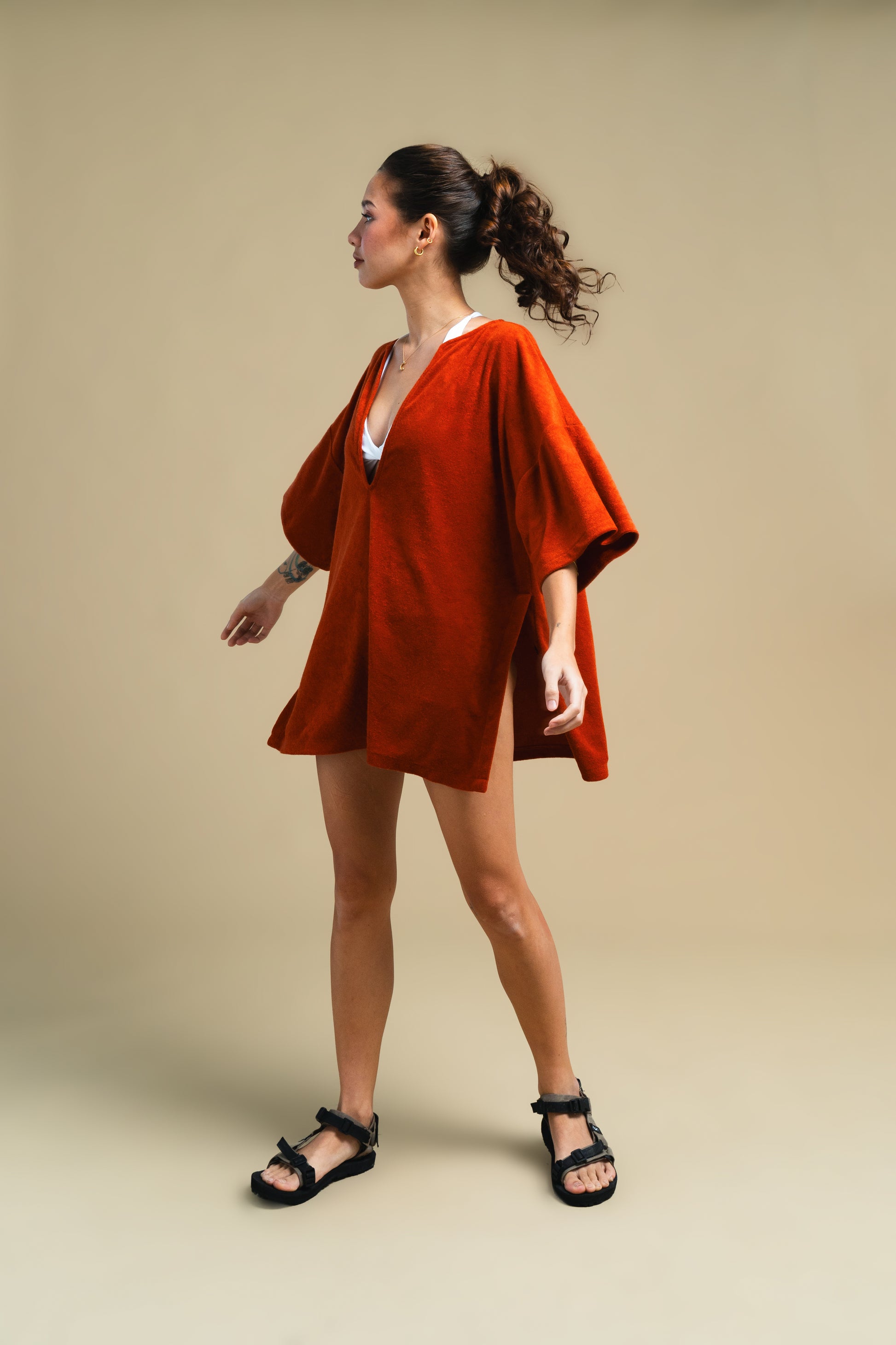 The Terry Poncho is perfect for beach days, post-workouts, or casual weekends. It easily pairs with bikinis, workout clothes, and shorts for women, or trunks and linen pants for men.