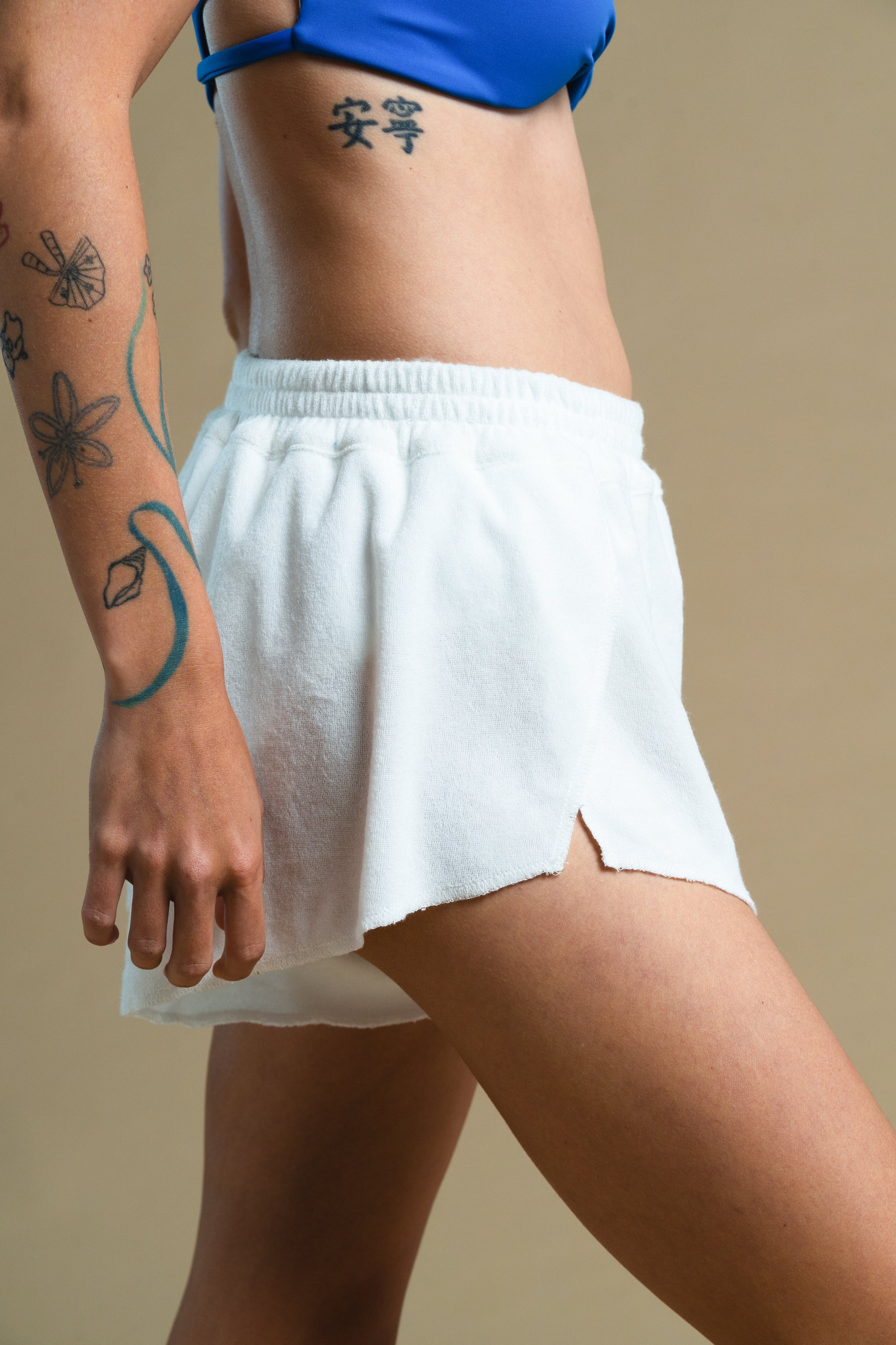 The Terry Shorts are designed to keep up with beach days, workouts, and hanging out. Easily pairing with a sports bra, bikini top, or oversized sweater for a ready-for-anything outfit.